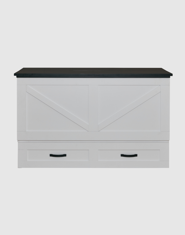 The Barn CabinetBed is a free-standing CabinetBed that gives that country charm to any room. Whether in the all wood Cojoba color or the 2 tone black and white, Its stylized clean lines, give it a modern barn-door look while keeping operation effortless for daily use. Stylish cabinet to queen size bed in 30 seconds.