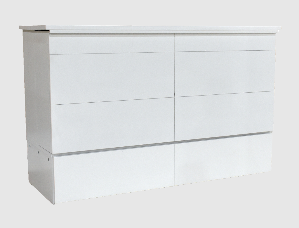 The contemporary look of this cabinetbed is defined by its clean, simple lines and uncluttered design. The flat, handle-free panels create a smooth surface that emphasizes minimalism and elegance. Its geometric form and subtle detailing highlight functionality without sacrificing style, making it a perfect fit for modern, urban living spaces where simplicity and efficiency are key.